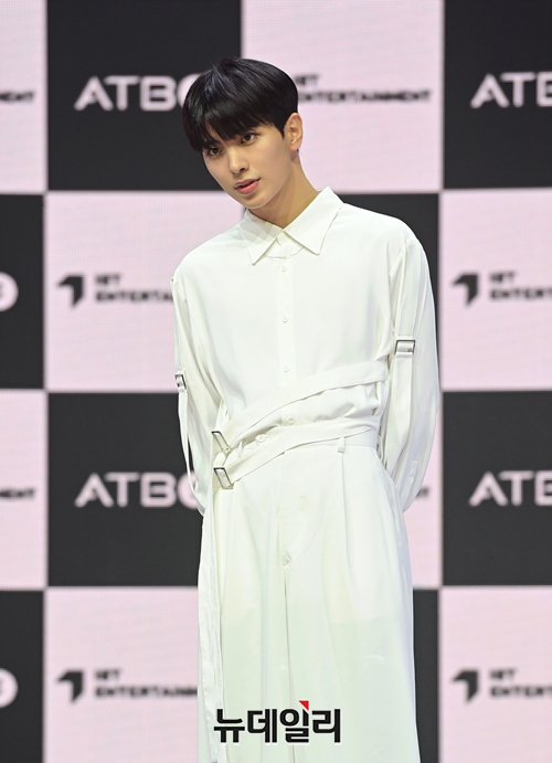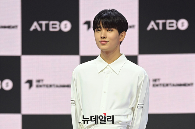 ATBO 멤버 류준민이 26일 오후 서울 광진구 예스24라이브홀에서 열린 미니 2집 '더 비기닝:시작' 쇼케이스에서 포토타임을 갖고 있다.