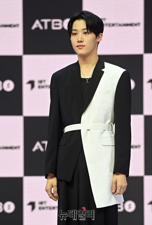 ATBO 멤버 배현준이 26일 오후 서울 광진구 예스24라이브홀에서 열린 미니 2집 '더 비기닝:시작' 쇼케이스에서 포토타임을 갖고 있다.
