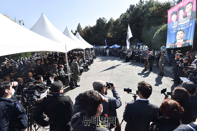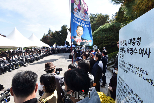 박정희 대통령 43주기 추도식이 26일 오전 서울 동작구 국립서울현충원에서 열리고 있다. 앞서 윤석열 대통령은 25일 오후 현충원 박 대통령 묘역을 찾아 참배했다.