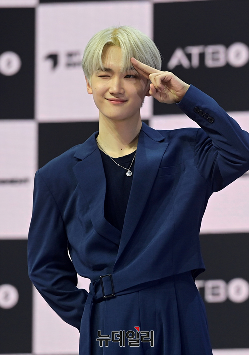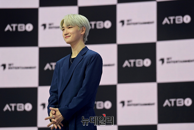 ATBO 멤버 김연규가 26일 오후 서울 광진구 예스24라이브홀에서 열린 미니 2집 '더 비기닝:시작' 쇼케이스에서 포토타임을 갖고 있다.