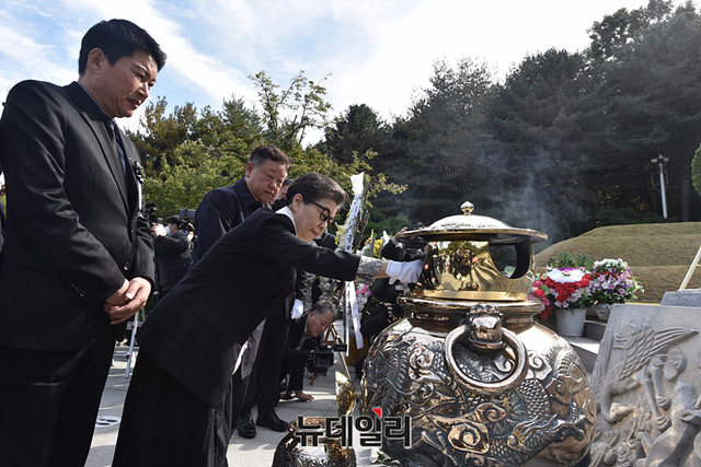 박근령 전 육영재단 이사장을 비롯한 유족이 26일 오후 서울 동작구 국립서울현충원을 찾아 박정희 전 대통령 묘역을 참배하고 있다.