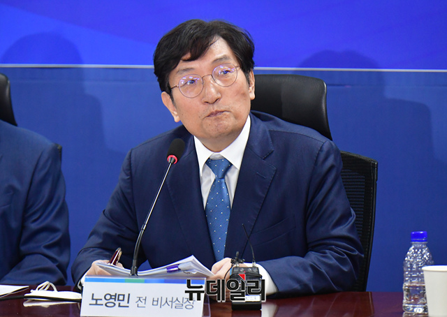 노영민 전 문재인 대통령 비서실장이 27일 국회 의원회관에서 더불어민주당 주최로 열린 서해 공무원 피격 사건 및 흉악범죄자 추방 사건 관련 기자회견에서 발언을 하고 있다.