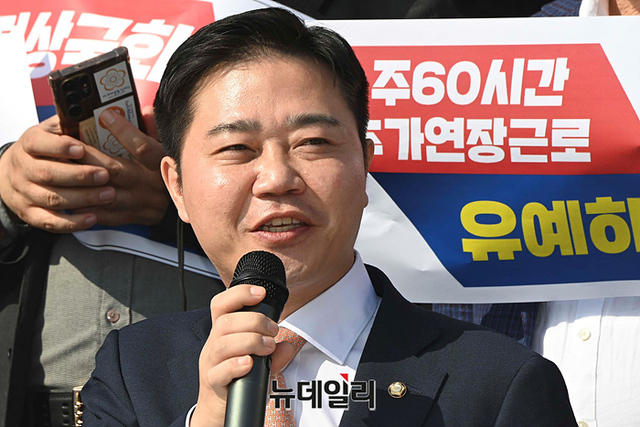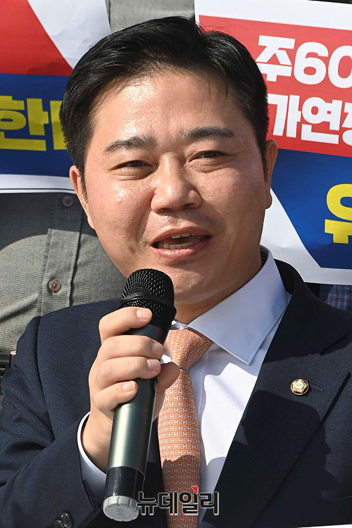 지성호 국민의힘 의원이 28일 오전 국회에서 열린 경제회복과 민생안정 촉구 및 노동관련 제도개선 기자회견에서 발언을 하고 있다.