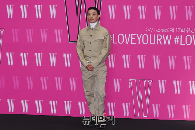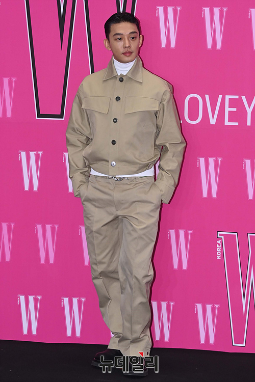 배우 유아인이 28일 오후 서울 종로구 포시즌스 호텔에서 패션 매거진 '더블유 코리아' 주최로 열린 '제17회 유방암 인식 향상 캠페인 자선 행사'에서 포즈를 취하고 있다.