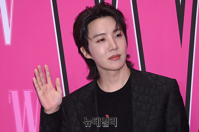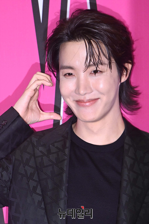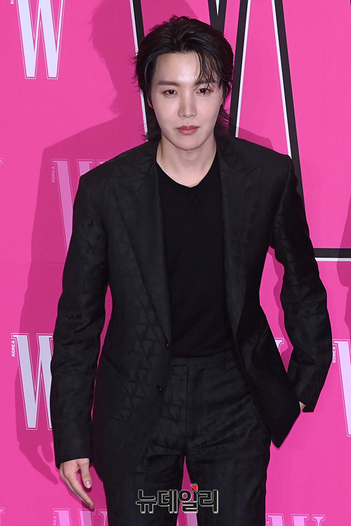 방탄소년단(BTS) 멤버 제이홉이 28일 오후 서울 종로구 포시즌스 호텔에서 패션 매거진 '더블유 코리아' 주최로 열린 '제17회 유방암 인식 향상 캠페인 자선 행사'에서 포즈를 취하고 있다.