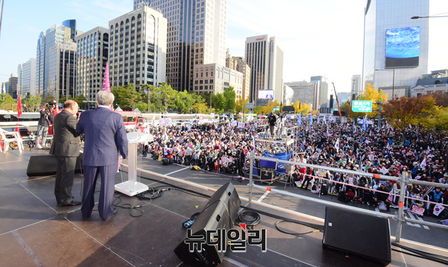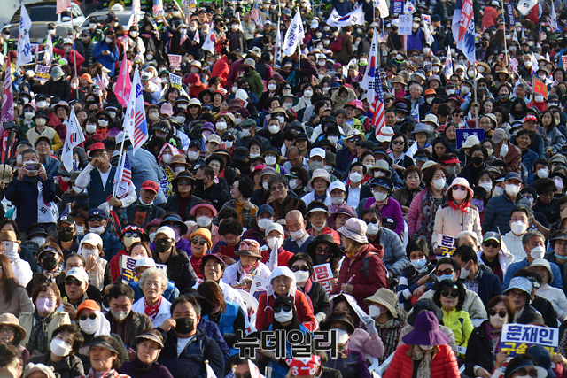 '자유통일 주사파 척결 국민대회'가 29일 오후 서울 광화문 세종대로에서 전광훈 목사가 이끄는 자유통일당 주최로 열리고 있다.