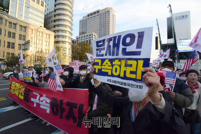 이날 참석자들은 '문재인을 구속하라', '이재명을 구속하라' 피켓을 들고 "주사파 척결"을 주장했다.