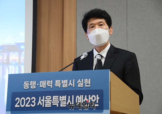 정수용 서울시 기획조정실장이 1일 오전 서울시청에서 열린 2023년 서울시 예산안 기자설명회에서 발언을 하고 있다. 정 실장은 "47조 2,052억 규모의 내년 서울시 예산안을 의회에 제출하겠다"고 말했다. (사진=서울시)
