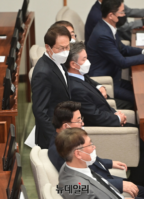 조희연 서울시교육감이 1일 오후 서울시의회 본회의장에서 열린 제315회 정례회 제1차 본회의에 입장하고 있다. 앞서 정부는 11월 5일까지 이태원 사고와 관련해 국가 애도기간으로 지정했다.