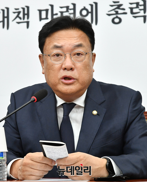 정진석 국민의힘 비상대책위원장이 2일 국회에서 열린 비상대책위원회의에서 모두발언을 하고 있다.