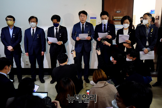 [포토] 의사일정 항의 기자회견 하는 민주당 법사위 의원들