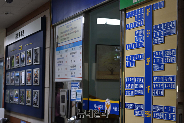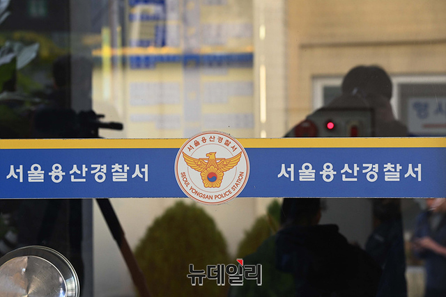 '이태원 압사 사고' 부실 대응을 수사하는 경찰특별수사본부가 서울경찰청과 용산경찰서, 용산구청 등 8곳에 대해 압수수색을 진행하고 있다. 압수수색 중인 용산경찰서 입구가 닫혀 있다.