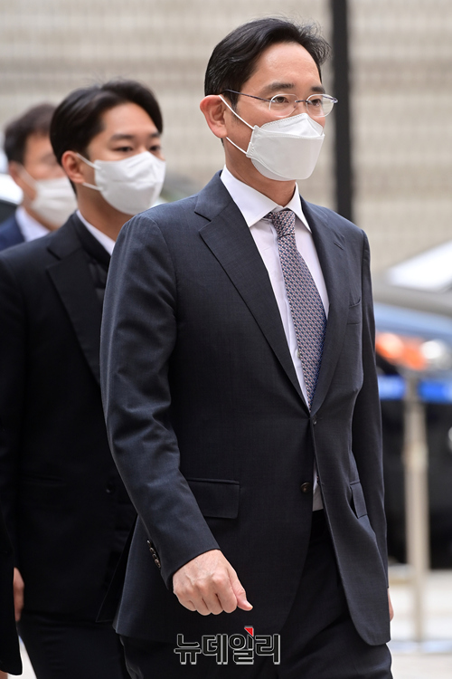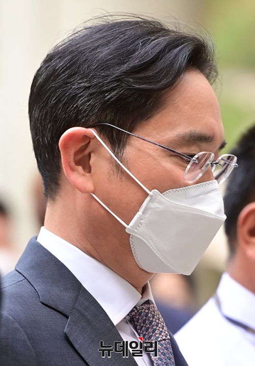 이재용 삼성전자 회장이 3일 오전 서울 서초구 서울중앙지법에서 열린 공판에 출석하고 있다.