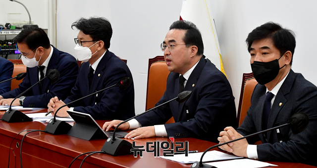 박홍근 더불어민주당 원내대표가 3일 국회에서 열린 정책조정회의에서 모두발언을 하고 있다.