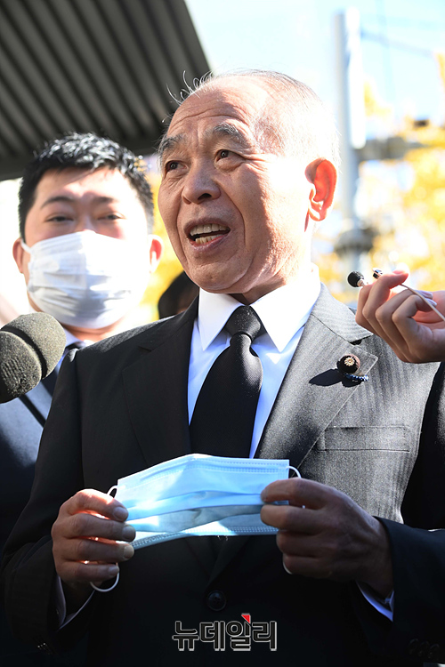 '스즈키 무네오' 일본유신회 참의원을 비롯한 일한의원연맹 방한대표단이 4일 오전 서울 용산구 '이태원 압사 사고' 현장에 마련된 추모공간을 찾아 취재진의 질문에 답하고 있다.