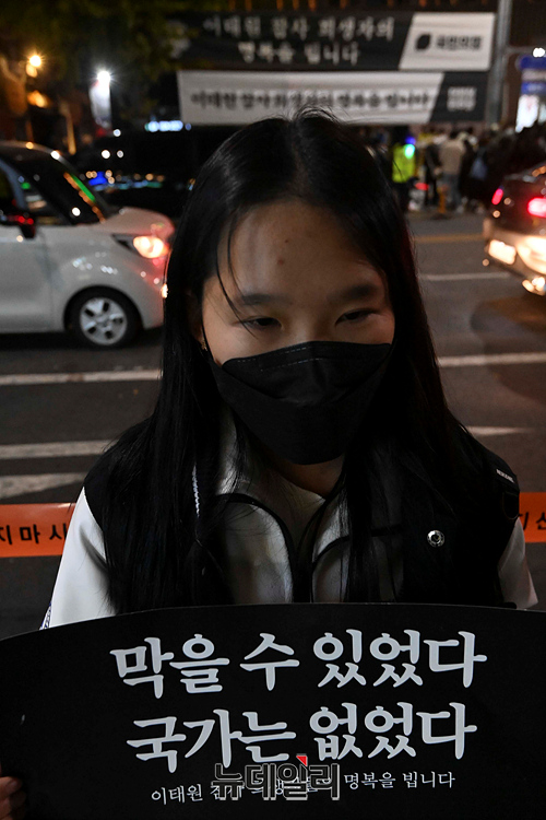 청년진보당을 비롯한 좌파단체가 4일 오후 서울 용산구 이태원 사고 추모공간 인근에서 진상규명과 책임자 처벌 등을 촉구하고 있다.