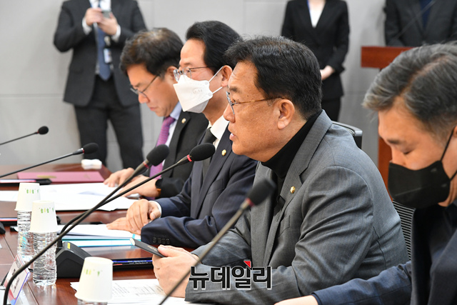 정진석 국민의힘 비상대책위원장이 7일 국회 의원회관에서 열린 경제안정특별위원회 임명장 수여식 및 제1차 회의에서 류성걸 위원장 및 위원들과 기념촬영을 하고 있다.
