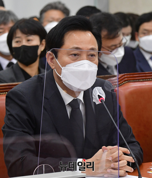 오세훈 서울시장이 7일 국회에서 열린 행정안전위원회 전체회의에서 의원들 질문에 답변하고 있다.