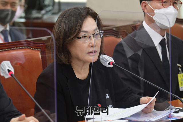 박희영 용산구청장이 7일 국회에서 열린 행정안전위원회 전체회의에서 의원들 질문에 답변하고 있다.
