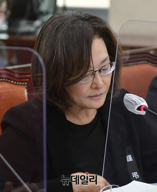 박희영 용산구청장이 7일 국회에서 열린 행정안전위원회 전체회의에서 의원들 질문에 답변하고 있다.