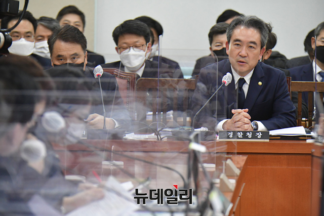 윤희근 경찰청장이 7일 국회에서 열린 행정안전위원회 전체회의에서 의원들 질문에 답변하고 있다.