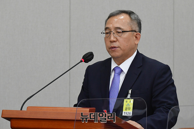 김종철 대통령 경호처 차장 8일 국회에서 열린 운영위원회의 대통령 비서실, 국가안보실, 경호처 등에 대한 국정감사에서 의원들의 질문에 답하고 있다.