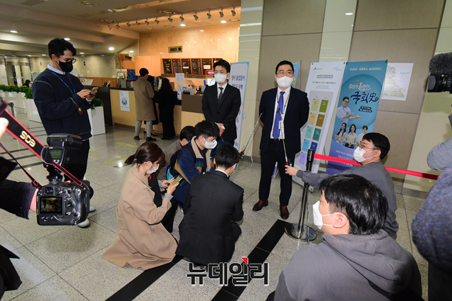 검찰 관계자들이 9일 오전 국회 더불어민주당 당대표 정무조정실 사무실 압수수색을 위해 국회의장 면담을 시도한 후 거부당하자 국회 후문에서 대기하고 있다.