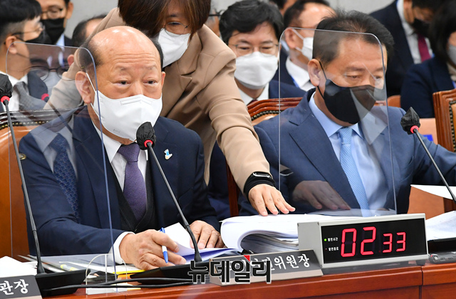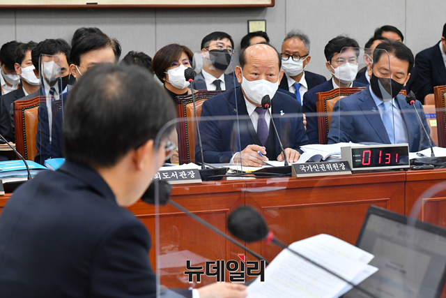 송두환 국가인권위원장이 9일 오전 국회에서 열린 운영위원회 전체회의에 출석해 의원들의 질문에 답변 하고 있다.