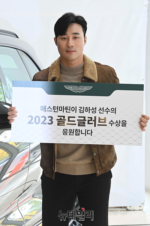 미국 프로야구 메이저리그(MLB) 샌디에이고 파드리스 소속 내야수 김하성이 9일 오전 서울 강남구 애스턴마틴에서 열린 '2023 골드글러브 수상 행사'에서 포즈를 취하고 있다.