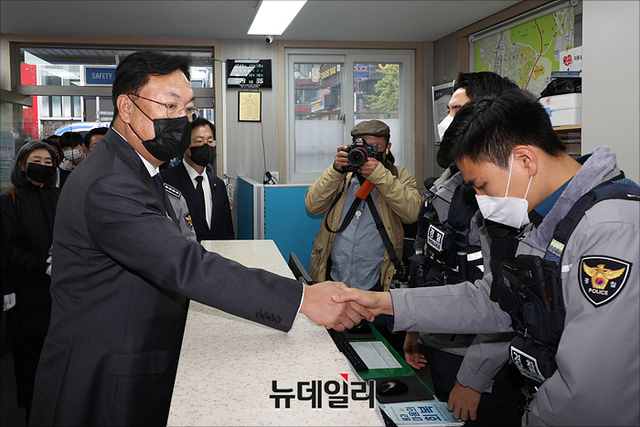 [포토] 이태원파출소 찾아 경찰관 격려하는 정진석