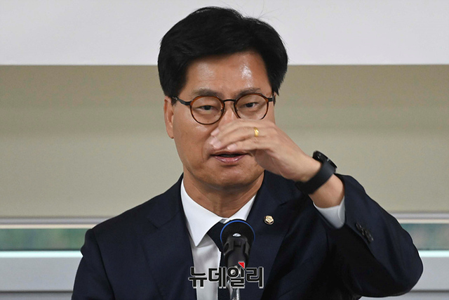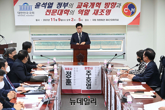 김영식 국민의힘 의원이 9일 오후 국회 의원회관에서 열린 '윤석열 정부의 교육개혁 방향과 전문대학의 역할 재조명' 세미나에서 축사를 하고 있다.
