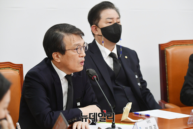 김의겸 더불어민주당 대변인이 10일 국회에서 열린 검찰의 야당압수수색 및 야당탄압대책위 기자간담회에서 모두 발언을 하고 있다.