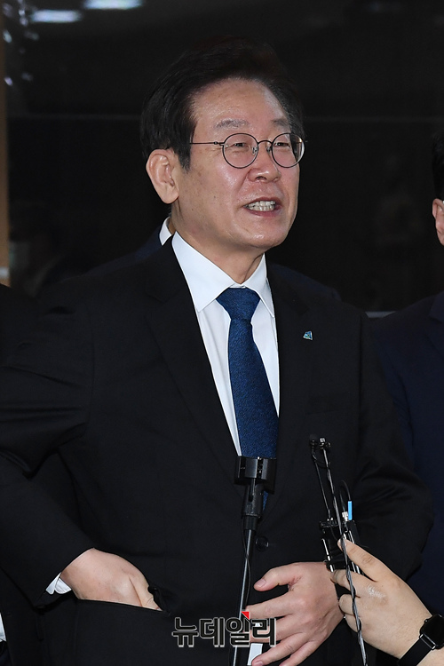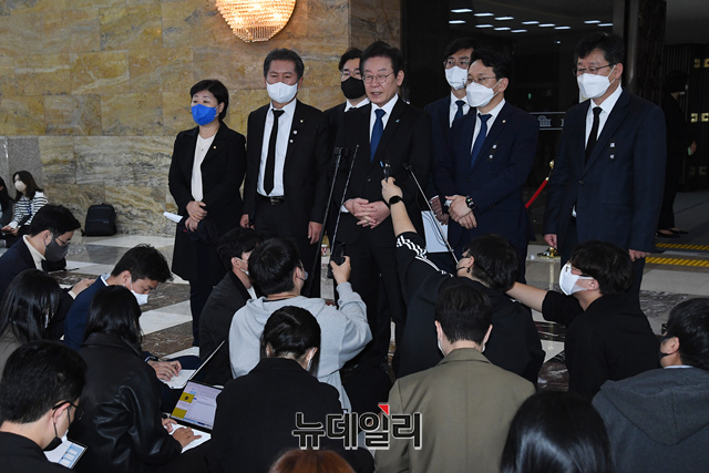 [포토] 기자들의 질문에 답하는 이재명 민주당 대표