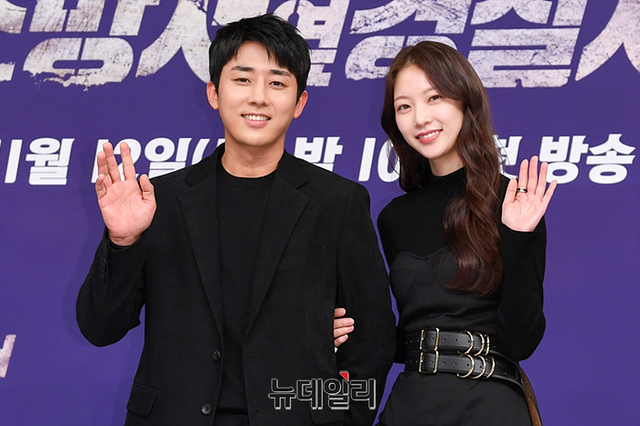 배우 손호준, 공승연이 10일 오후 온라인으로 열린 SBS 새 토일드라마 '소방서 옆 경찰서(연출 신경수, 극본 민지은)' 제작발표회에서 포즈를 취하고 있다.