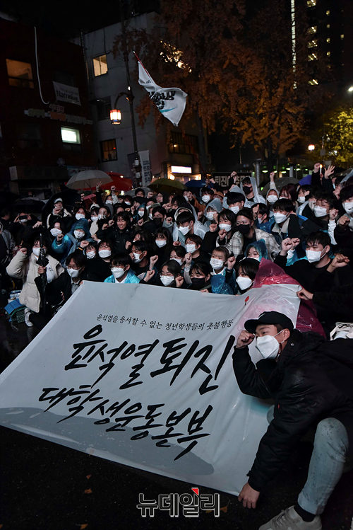 [포토] '이태원 사고 책임자 처벌 촉구' 집회 참석한 윤석열퇴진대학생운동본부