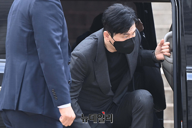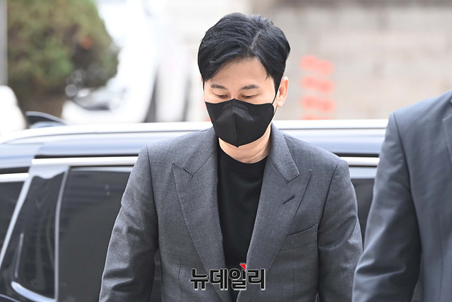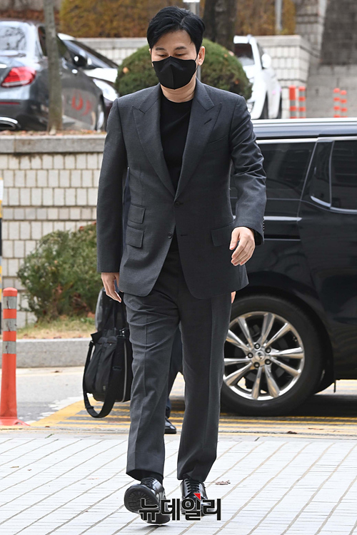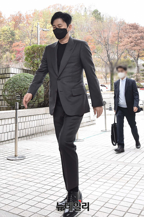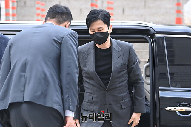 비아이 마약사건 무마 협박 등 혐의를 받고 있는 양현석 전 YG엔터테인먼트 대표가 14일 오전 서울 서초구 중앙지법에서 열린 결심공판에 출석하고 있다.