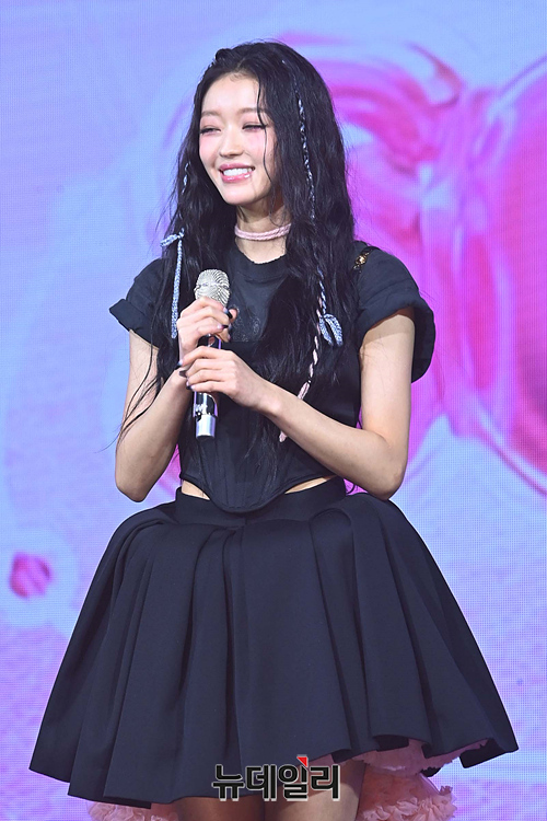 가수 유아가 14일 오후 서울 광진구 예스24라이브홀에서 열린 두 번째 미니앨범 '셀피시(SELFISH)' 발매기념 쇼케이스에서 앨범을 소개하고 있다.