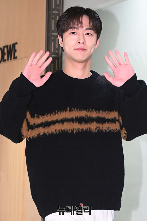 배우 배인혁이 15일 오전 서울 서초구 신세계백화점 강남점에서 열린 브랜드 제냐 오아시 캐시미어 팝업스토어 오픈 기념행사에서 포즈를 취하고 있다. 팝업은 12월 4일까지 오픈.
