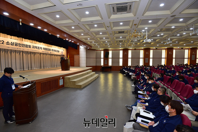 박성효 소상공인시장진흥공단 이사장이 15일 오후 대전 서구 KT대전인재개발원에서 열린 2022 소상공인연합회 역량강화 추계 워크숍에서 인사말을 하고 있다.