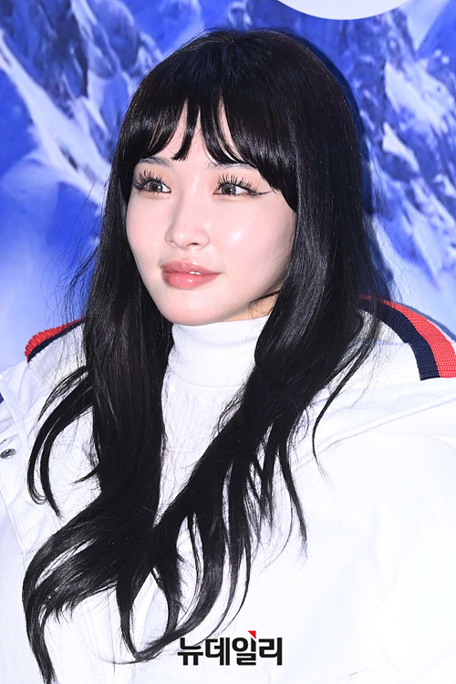 가수 청하가 15일 오후 서울 강남구 퓨잡 매장에서 열린 퓨잡 70주년 기념 전시회에서 포즈를 취하고 있다.
