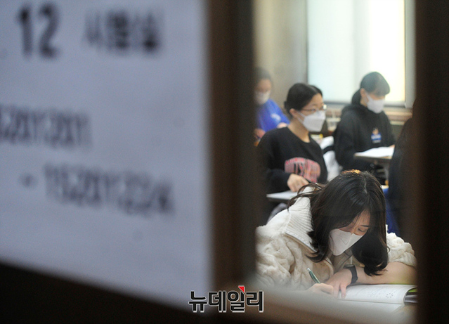 2023학년도 대학수학능력시험일인 17일 오전 서울 중구 이화여자외국어고등학교에서 수험생들이 수능 막바지 준비를 하고 있다. (사진=공동취재단)