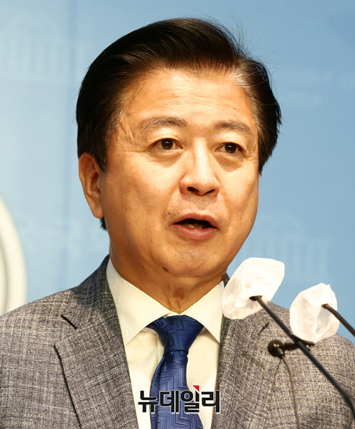 노웅래 더불어민주당 의원이 17일 오전 국회 소통관에서 기자회견을 갖고 자신의 뇌물수수 혐의에 대해 결백을 주장하고 있다.