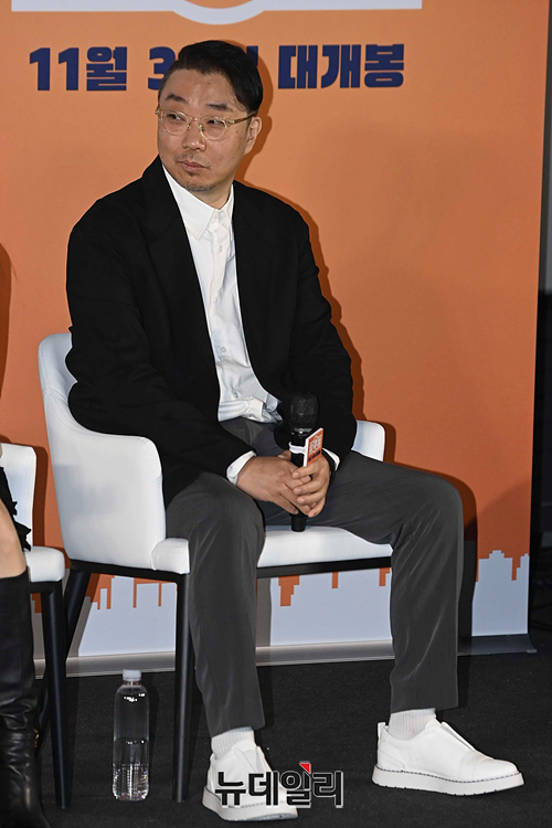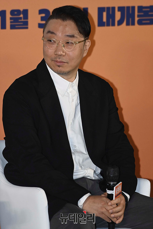감독 임진순이 17일 오전 서울 CGV 용산아이파크몰에서 열린 영화 '압꾸정' 제작보고회에서 취재진의 질문을 듣고 있다.