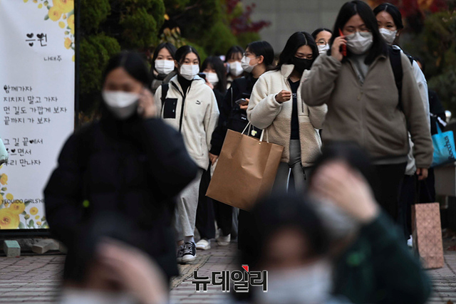 2023학년도 대학수학능력시험일인 17일 오후 서울 여의도여자고등학교에서 시험을 마친 수험생들이 고사장을 나서고 있다.