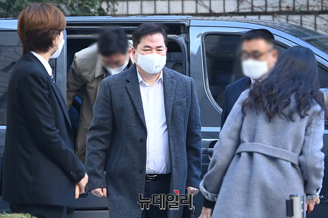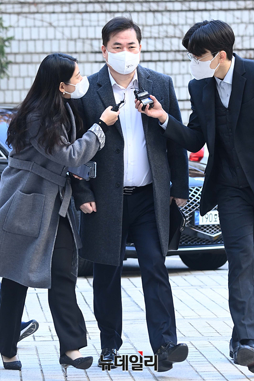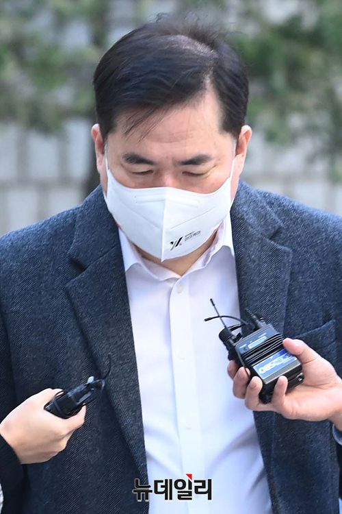 특정범죄가중처벌등에관한법률위반 등 혐의를 받고 있는 유동규 전 성남도시개발공사 기획본부장이 18일 오전 서울 서초구 중앙지법에서 열린 공판에 출석하고 있다.