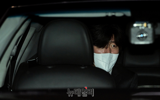 천화동인 4호 소유주 남욱 변호사가 구속기한 만료일인 21일 자정 경기 의왕시 서울구치소에서 출소해 차량을 타고 이동하고 있다. 출소한 남 변호사는 내일 오전 서울중앙지법에서 열리는 공판에 출석할 예정이다. 이어 24일에는 천화동인 1호 소유주 김만배 씨가 출소를 앞두고 있다. (경기 의왕=정상윤 기자)