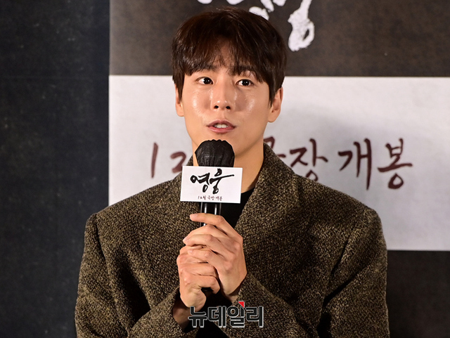 배우 이현우가 21일 오전 서울 CGV용산아이파크몰에서 열린 영화 '영웅(감독 윤제균)' 제작보고회에서 인사말을 하고 있다.