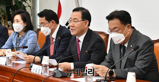 주호영 국민의힘 원내대표가 21일 국회에서 열린 비상대책위원회의에서 모두발언을 하고 있다.