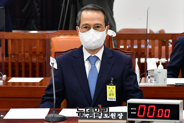 김규현 국가정보원장이 22일 국회에서 열린 정보위원회 전체회의에 출석해 회의 시작을 기다리고 있다. (공동취재사진)