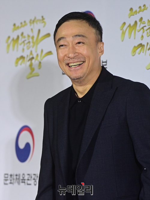 배우 이성민이 24일 오후 서울 중구 국립극장에서 열린 '2022 대한민국 대중문화예술상' 레드카펫 행사에서 포즈를 취하고 있다. 이성민은 국무총리표창을 수상한다.